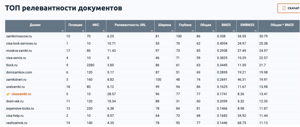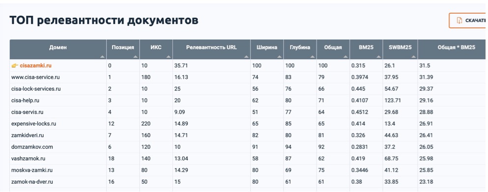 Используется авторский софт для оптимальной оптимизации под BM25.