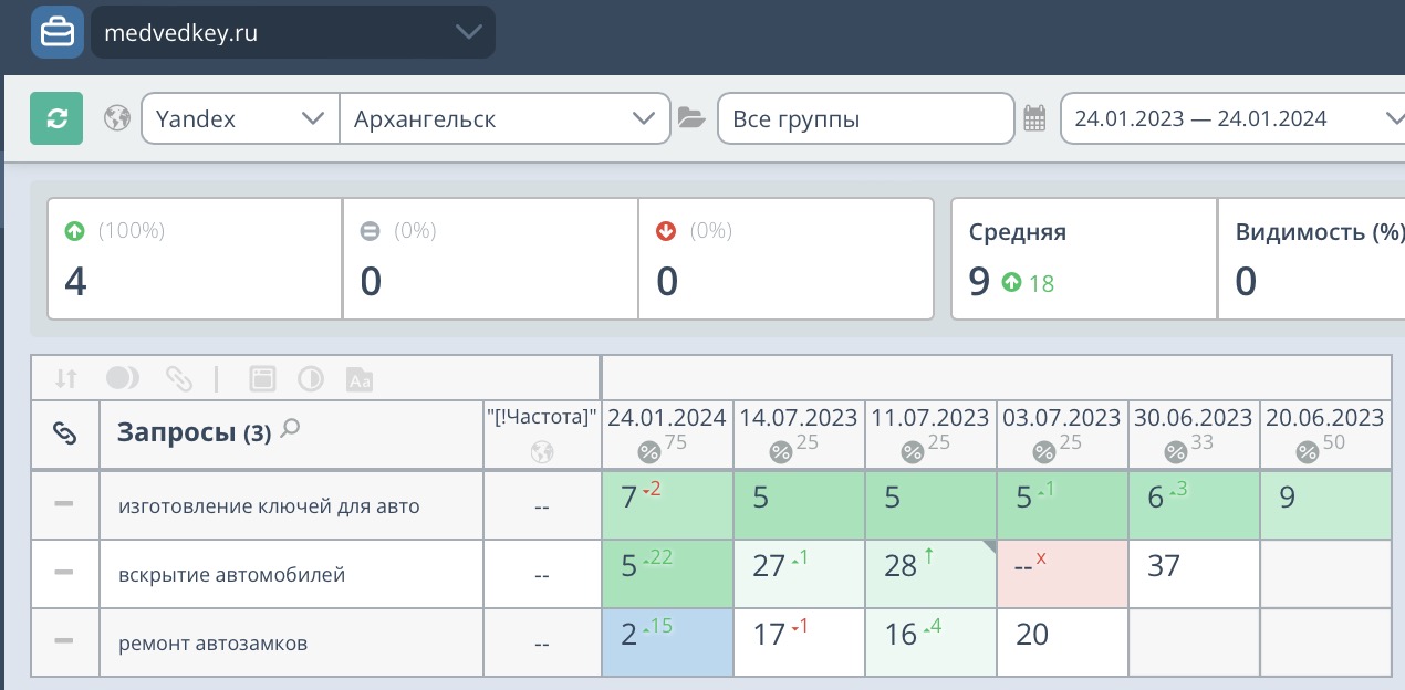 Иногда рост виден в течение нескольких дней. В комплексной работе по продвижению сайта текстовая оптимизация релевантности дает исключительные результаты, так как это белый способ повысить полезность вашей страницы, а главное это дает долгосрочный результат.